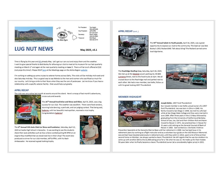 Join us for monthly insights and updates on antique cars, events around the island, and other interesting tidbits of information.